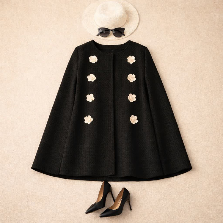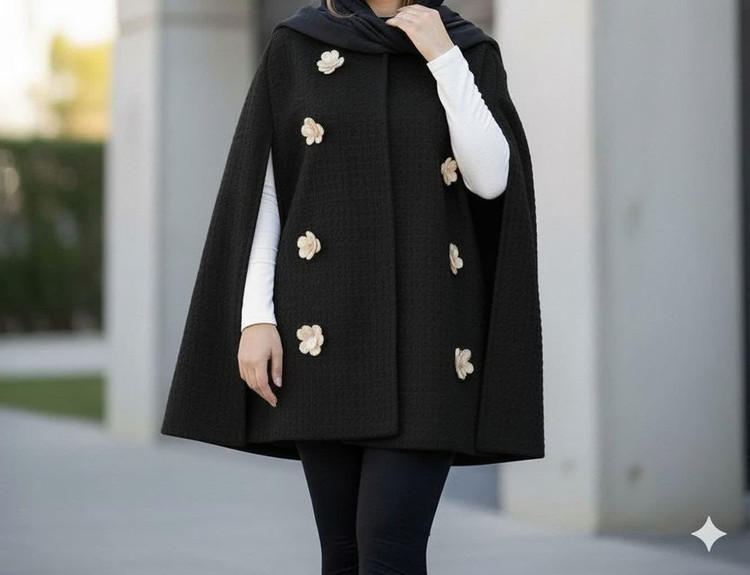 روی مانتو پنج گل کار شده است.