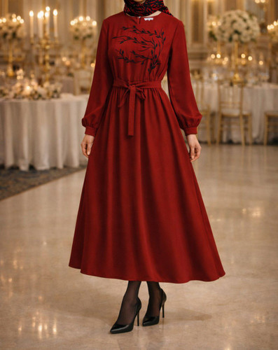 پیراهن گلدوزی بلند کرپ حریر